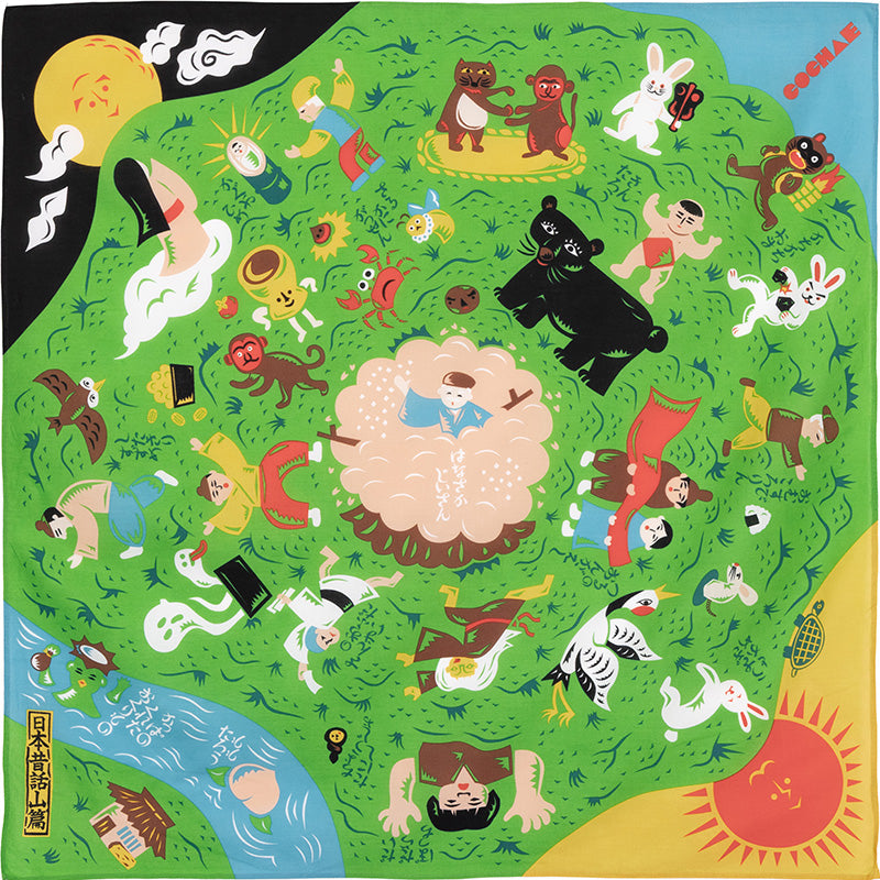 日本の昔話の世界観を、日常の中で気軽に楽しめる、遊び心あふれる風呂敷です。