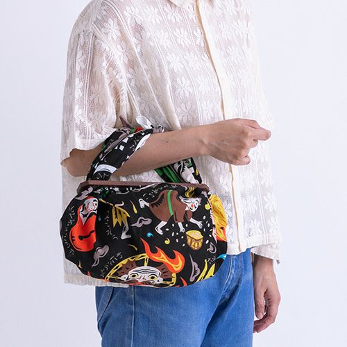 このふろしきにも、縁起の良い妖怪たちがたくさん登場しており、見ているだけで楽しくなるデザインです。